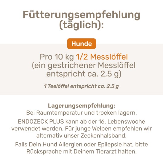 - ENDOZECK PLUS kann ab der 16. Lebenswoche verwendet werden. Für junge Welpen empfehlen wir alternativ unser Zeckenhalsband.